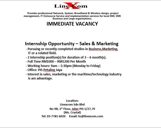 Internship @Linexcom Sdn Bhd in Sales / Marketing ShortlistJob Description