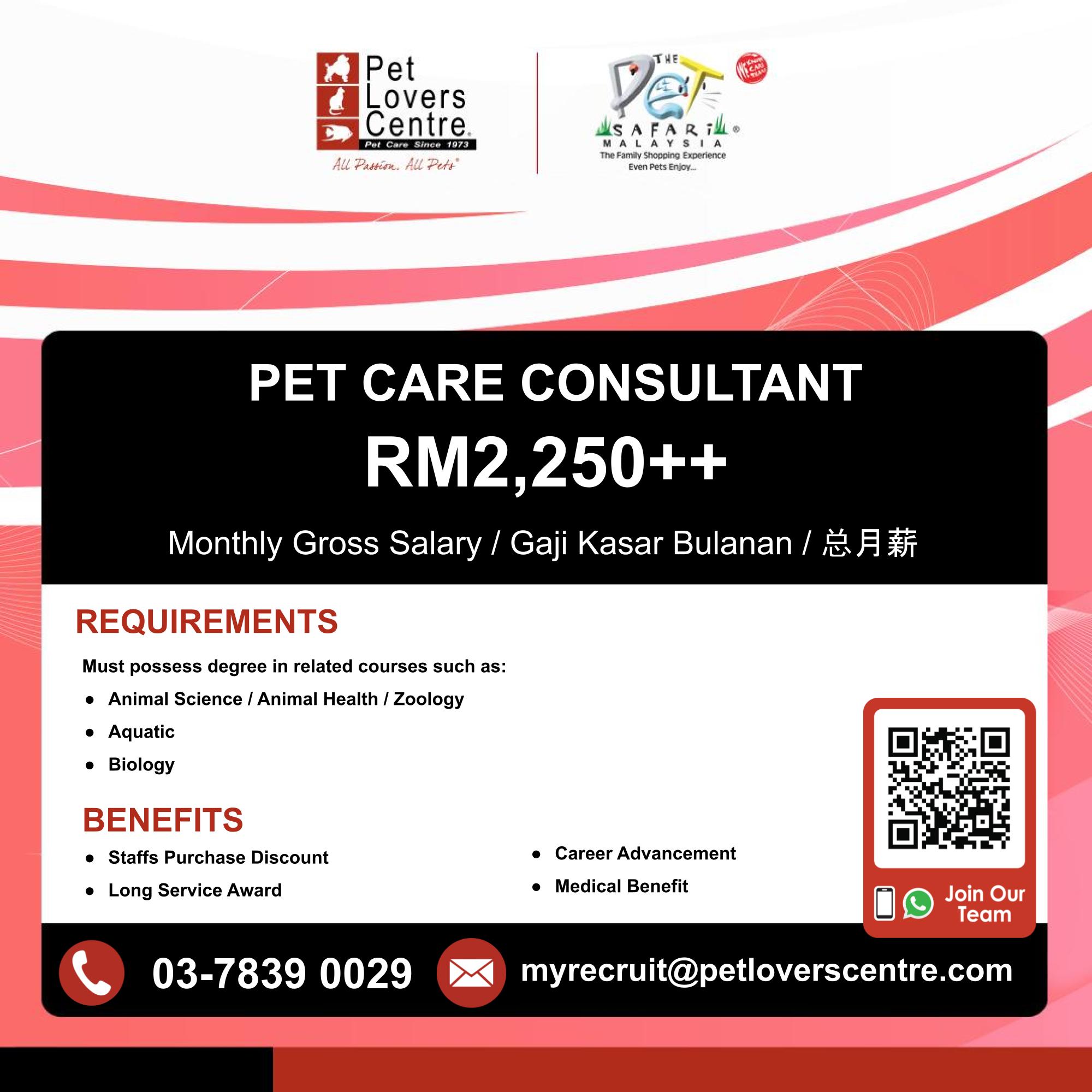 Interested candidates, kindly apply online or via email by sending your detailed resume to myrecruit@petloverscentre.com , or Whatsapp (Text Only) at 011 – 5991 2927, by providing your Name, Position, Mobile No. and Preferred Store.