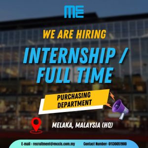 Send your resume to [recruitment@mccis.com.my] or contact through WhatsApp [01130051900] before 30/11/2025 and start your purchasing journey with us!